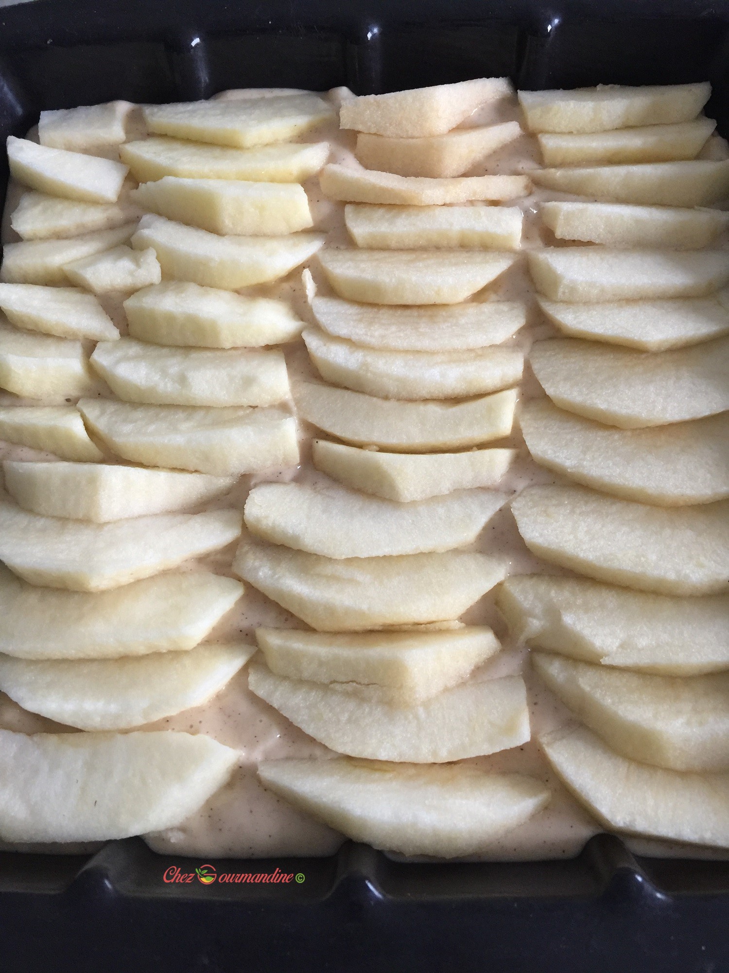 - Couvrir toute la pâte de pommes en les enfonçant légèrement.